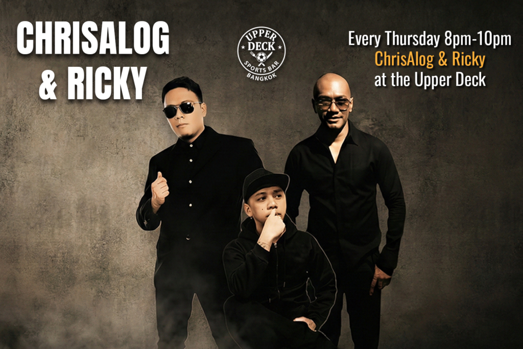 Start your weekend early with the best live sounds in Bangkok. We are excited to announce our new weekly residency: Every Thursday night, the talented duo ChrisAlog & Ricky take the stage at The Upperdeck Sportsbar.